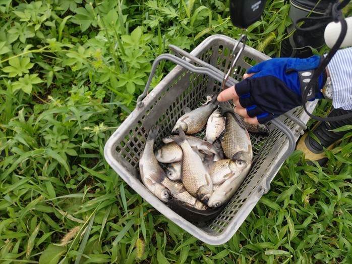 7:00 手賀川曙橋南側駐車場集合。加者7名でした。新木水路水色水門の東側で開始。8尺竿、バランス底、グルダンゴ。流れはなくアタリもなし。移動してみるか。早朝から釣り人がいた下手賀川に行ってみる。9:00下手賀川で再開。